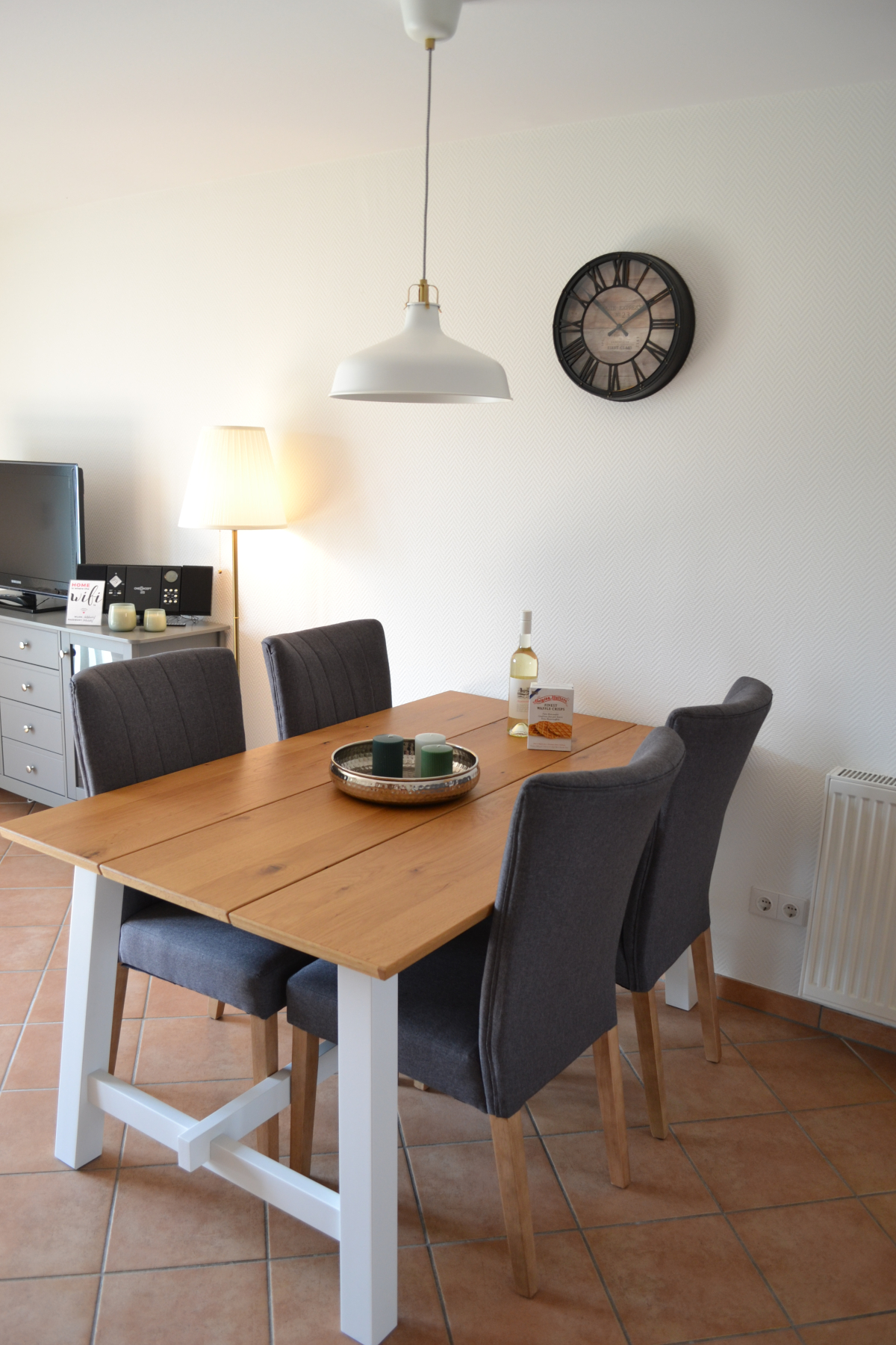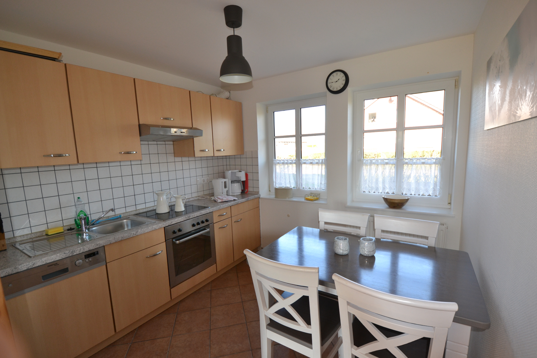 Im Erdgeschoss einer jeden Wohnung befindet sich eine geräumige Küche sowie ein großer, gemütlicher Wohnraum, eine Eingangsdiele und ein kleines WC. Die Schlafräume und das Bad befinden sich im Dachgeschoss. In der Galerie könnt Ihr euch einen kleinen Eindruck von den Ferienwohnungen verschaffen.